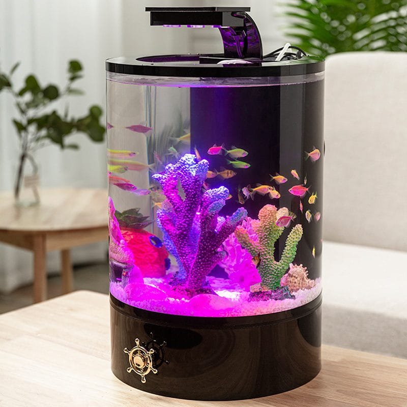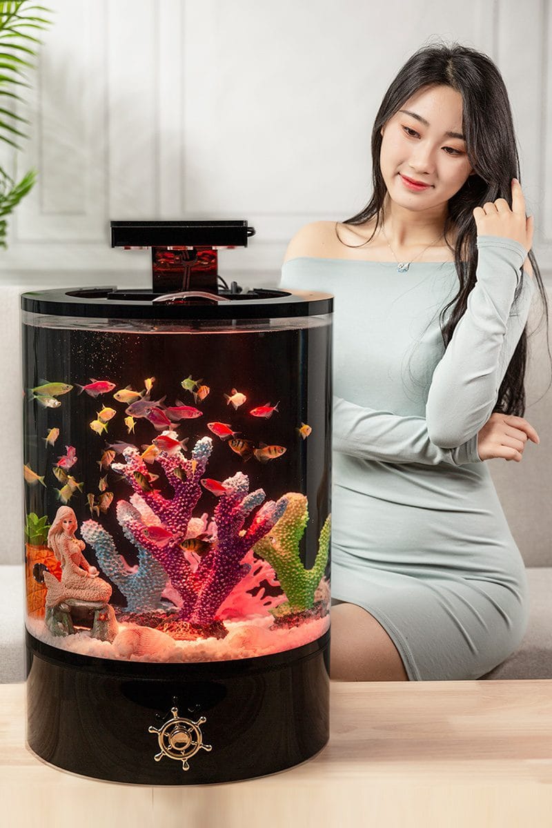 cilinder-aquarium van plexiglas (acryl) is ontworpen als echte blikvanger: een rond panorama dat vanuit elke hoek mooi oogt.