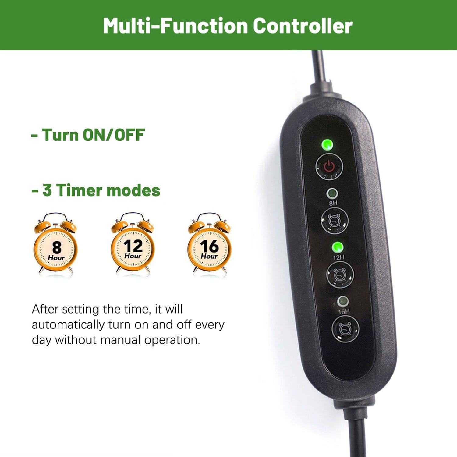 • 3 timerstanden (8/12/16 uur) – automatisch dagelijks herhalen