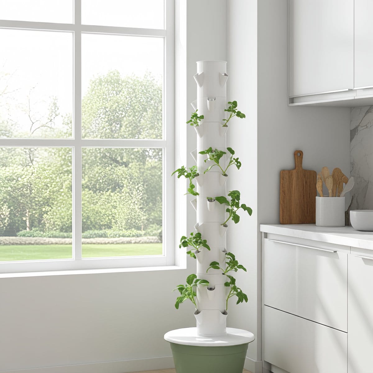 - ✔ Verticale opstelling met 36 plantposities op een voetprint van 0,21 m²